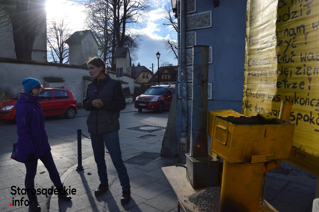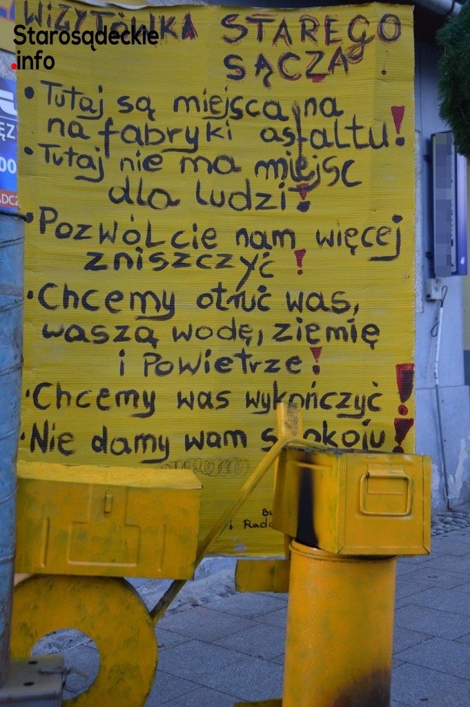 –Tuż obok asfaltowni i wysypiska śmieci mamy ścieżkę rowerową -to jest absurd -mówi Marzena -pan burmistrz mówi o jakości asfaltu, że musi być produkowany blisko, żeby był gorący. To jest zwykłe „gadanie” na korzyść firmy Machnik. Popatrzmy na autostrady, które są wykonywane. Tam nie spotkamy wytwórni mas bitumicznych. Asfalt dowożony jest tirami po 200 -300 km. (…) Co to za bajka? (…) Kolejna rzecz. Czy burmistrz w ogóle wie co się dzieje w lesie, pomiędzy asfaltownią a rzeką Poprad? Nagminne kradzieże żwiru. Drogi są wyjeżdżone dookoła asfaltowni, tuż obok ścieki rowerowej EuroVelo11. Koparki kopią nagminnie żwir. Drzewa poprzewracane i 3 metrowe dziury. I burmistrz mówi, że on wie, że coś takiego ma miejsce, ale to jest inna sprawa. Co to znaczy inna sprawa? (…) Kolejna sprawa. Rowerzyści przejeżdżają sobie przez Stary Sącz, który jak to nazwał burmistrz jest miasteczkiem z klimatem. Wjeżdżamy w Piaski i co się dzieje? Wysypisko śmieci i fruwają reklamówki. Tiry wyjeżdżają z asfaltowni na ścieżkę rowerową. Wysypuje się z nich piach. Taki mamy klimat. Co za zakłamanie. (…) Kiedy jest kiepska pogoda i niskie ciśnienie, my w domach czujemy ten smród.