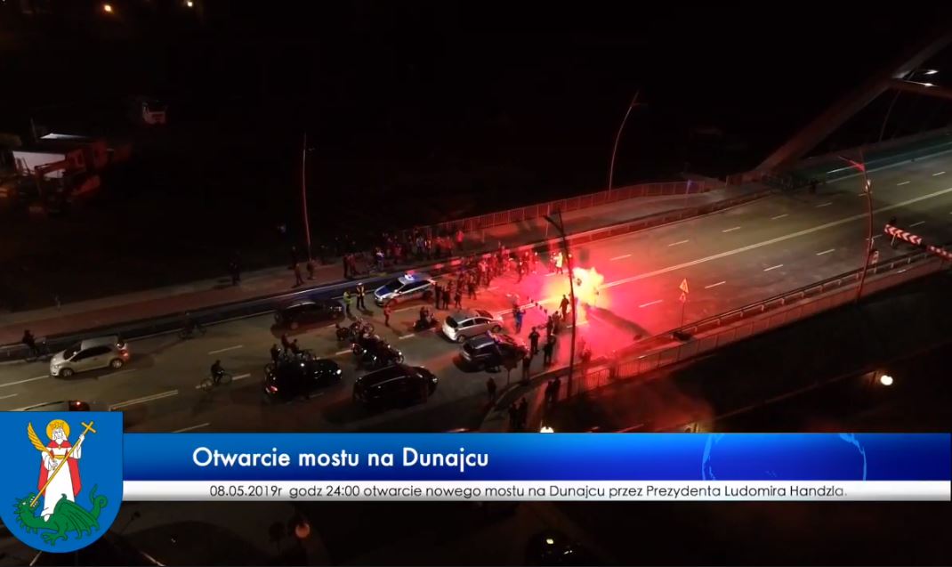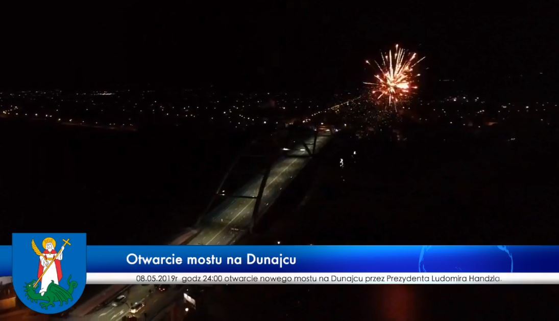 Były fajerwerki, ryk aut i motocykli, trąbiły klaksony, polał się też bezalkoholowy szampan, ale przede wszystkim wielką radość sprawił Prezydent Miasta Nowego Sącza Ludomir Handzel, podejmując decyzję o otwarciu mostu na rzece Dunajec. Stało się to o północy z 8 na 9 maja. Od tej chwili most jest już przejezdny, choć jeszcze trwają ostatnie, drobne prace techniczne.