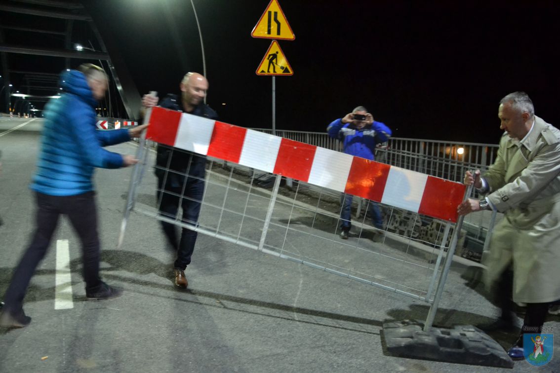 Były fajerwerki, ryk aut i motocykli, trąbiły klaksony, polał się też bezalkoholowy szampan, ale przede wszystkim wielką radość sprawił Prezydent Miasta Nowego Sącza Ludomir Handzel, podejmując decyzję o otwarciu mostu na rzece Dunajec. Stało się to o północy z 8 na 9 maja. Od tej chwili most jest już przejezdny, choć jeszcze trwają ostatnie, drobne prace techniczne.