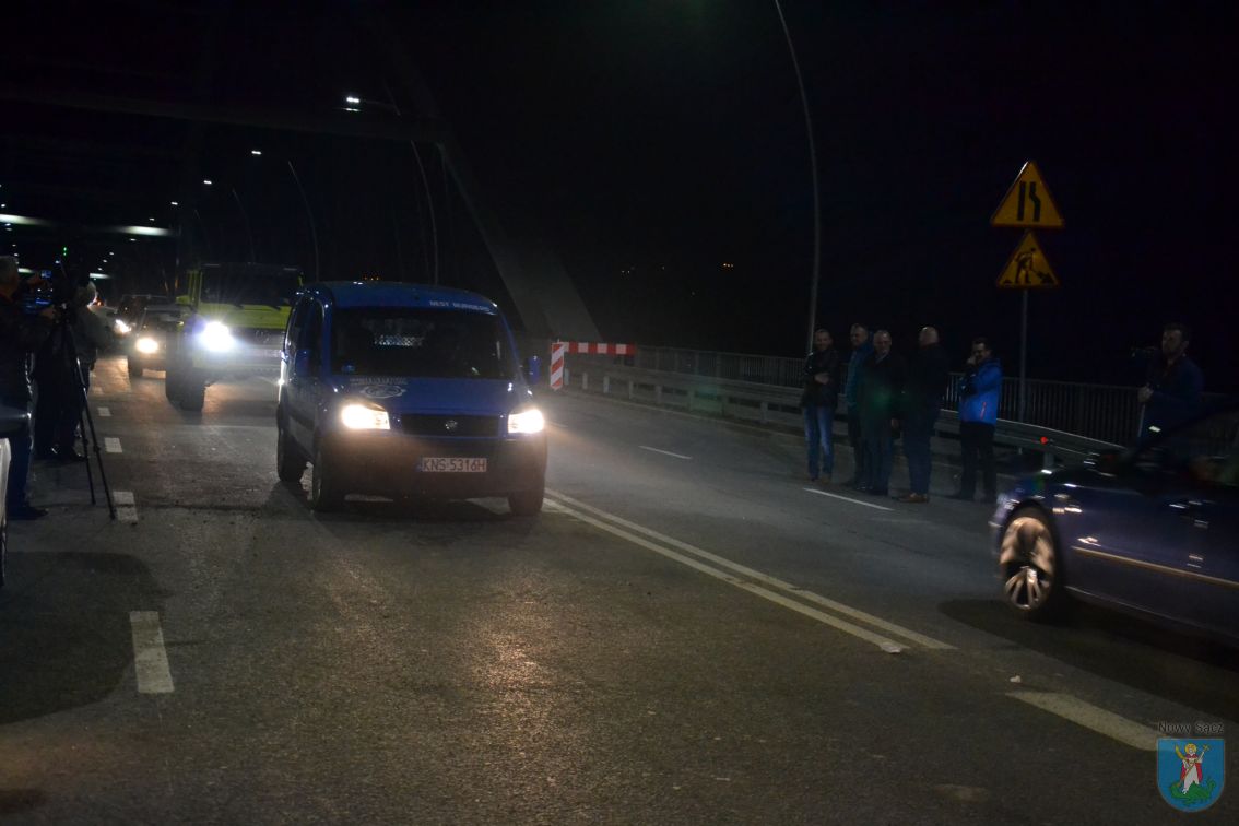 – W związku z tym, że o północy 8 maja uprawomocnia się decyzja pozwolenia na użytkowanie mostu, udało się trochę wcześniej go otworzyć, jeszcze przed oficjalnymi uroczystościami – mówił Prezydent Miasta Nowego Sącza Ludomir Handzel. – Myślę, że dla Sądeczan każda godzina jest ważna i cieszę się, że nawet o te dwa dni możemy skrócić cierpienia nas wszystkich. Widać po ilości osób, które tu przyszły, mimo tak późnej pory, że to dobra decyzja. Myślę o maturzystach, którzy musieli dojeżdżać na egzaminy z Heleny, myślę o tych osobach, które codziennie stały w korkach paląc niepotrzebnie paliwo, tracąc czas, denerwując się – dla nich każda godzina bez mostu była problemem. Dlatego jeśli można było otworzyć przejazd, zrobiliśmy to.