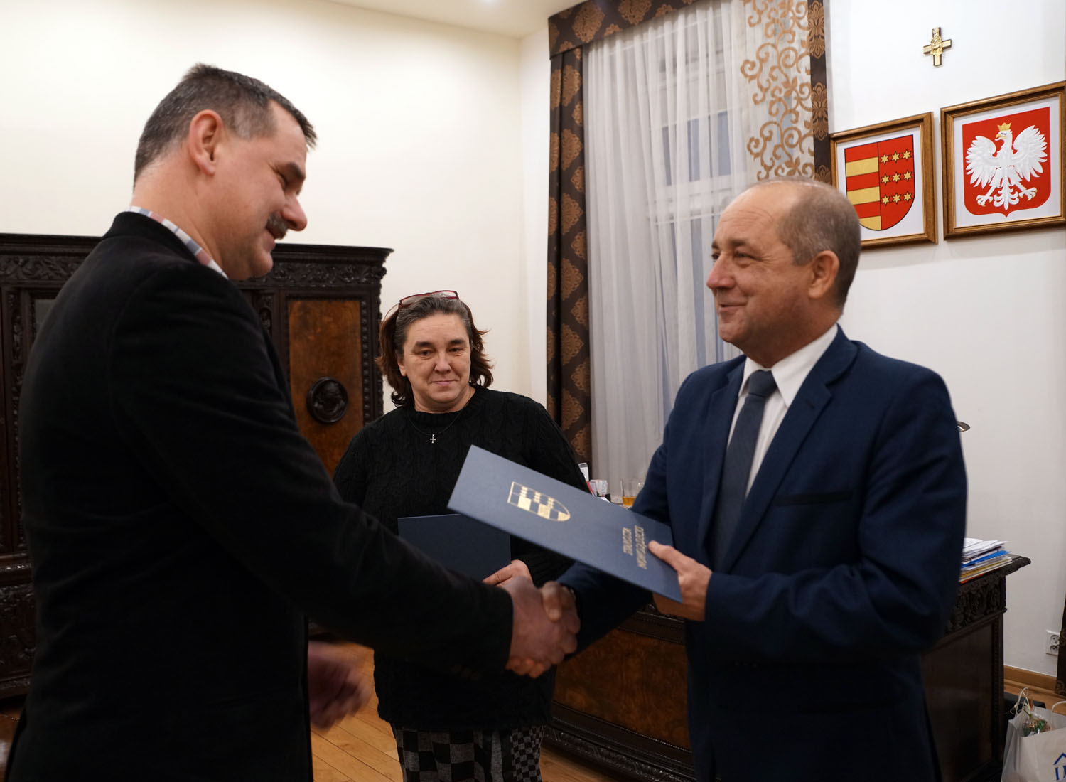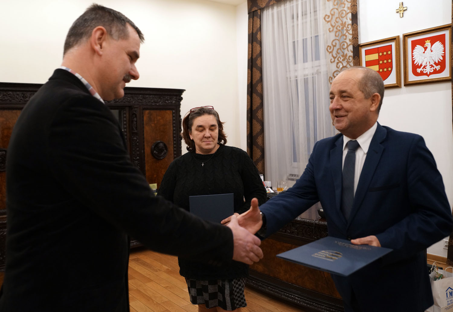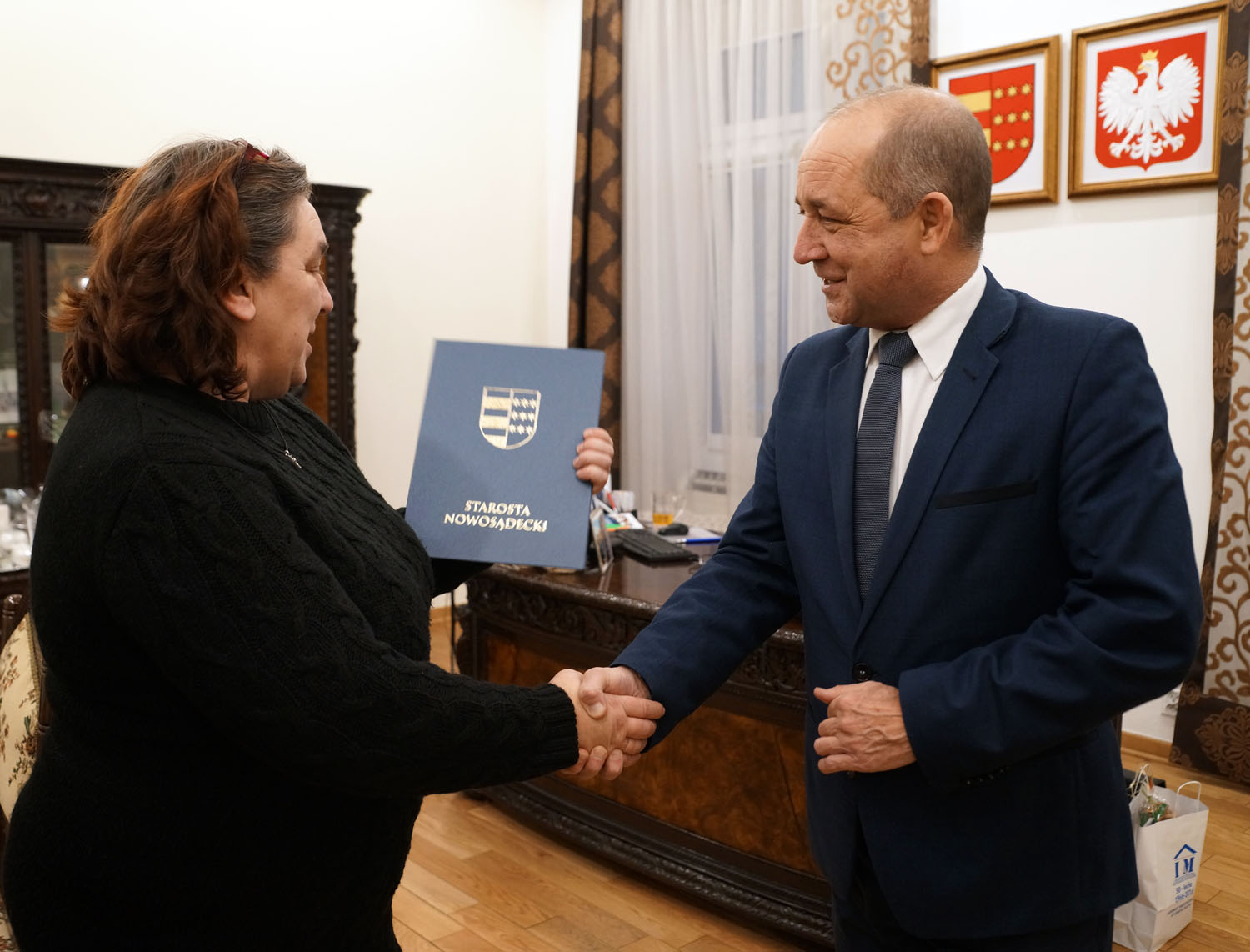 Starosta nowosądecki Marek Pławiak wręczył dziś nagrody w uznaniu szczególnych zasług w upowszechnianiu kultury Zofii Buczek z gminy Podegrodzie oraz Janowi Jamrozowiczowi z Piwnicznej-Zdroju.