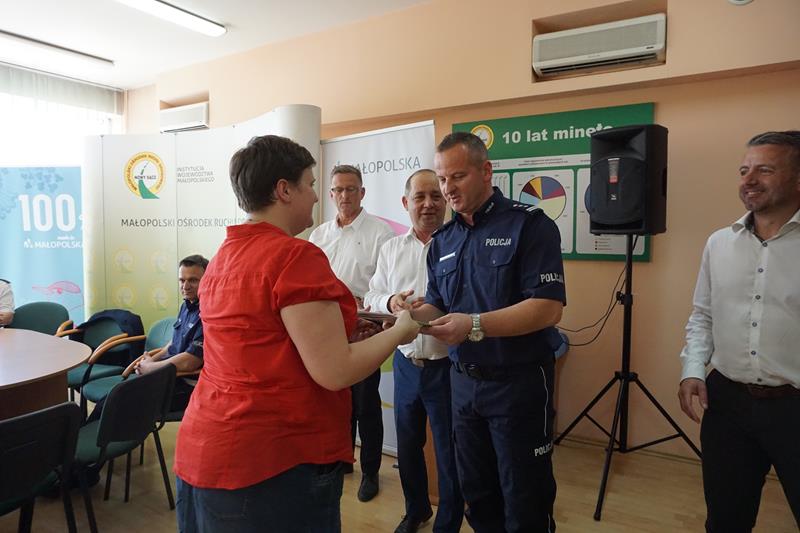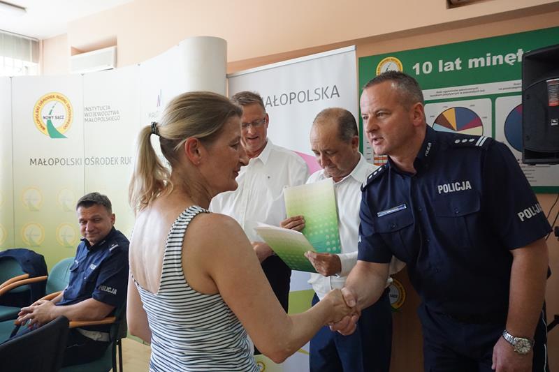 Nagrody wręczali gospodarze Ośrodka – Pan Marek Pławiak – Dyrektor MORD i Pan Artur Czernecki – zastępca Dyrektora oraz Komendant Miejski Policji w Nowym Sączu – insp. Jarosław Tokarczyk, podinsp. Albert Kogut -Naczelnik Wydziału Ruchu Drogowego KMP w Nowym Sączu, a także Michał Pierzchała – Zastępca Dyrektora Departamentu Infrastruktury Drogowej i Transportu Urzędu Marszałkowskiego Województwa Małopolskiego oraz Zastępca Komendanta Miejskiego Państwowej Straży Pożarnej w Nowym Sączu – st. bryg. Paweł Motyka.