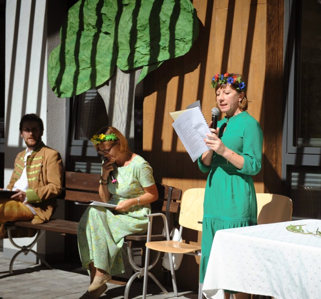 Pod czarnoleską lipą nie zabrakło też„Gniazdowych” podopiecznych, którzy z ogromnym zaangażowaniem przyłączyli się do literackiego świętowania. Jedni czytali, a nawet śpiewali wiersze Jana Kochanowskiego. Inni tańczyli w rytm renesansowej muzyki, przypominając staropolskie sobótkowe zabawy, o którychMistrz tak pięknie pisał w „Pieśni świętojańskiej o sobótce”. Jeszcze inni prezentowali swoje talenty aktorskie, wcielając się w role bohaterów słynnej „Odprawy posłów greckich” – niezwykłego i jakże aktualnego dramatu.