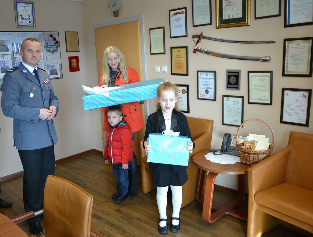 Mieszkanka Sądecczyzny siedmioletnia Nikola Czyżycka z Rojówki została wyróżniona w ogólnopolskim konkursie plastycznym pn. „Stok nie jest dla bałwanów”. Nie mogła uczestniczyć w gali finałowej konkursu w Warszawie, dlatego została zaproszona do Komendy Miejskiej Policji w Nowym Sączu, gdzie nagrodę laureatce w imieniu Dyrektora Departamentu Komunikacji Społecznej MSWiA – Pani Agnieszki Glapiak wręczył komendant sądeckiej jednostki mł. insp. Jarosław Tokarczyk oraz jego zastępca mł. insp. Jerzy Polczyk.