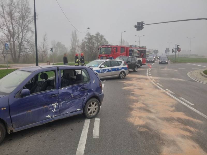 Na rondzie Solidarności doszło do kolizji dwóch pojazdów tj. Mitsubishi oraz Volkswagen Polomówi Marian Marszałek z PSP Nowy SączPojazdami podróżowali sami kierujący, którzy odmówili pomocy medycznej. Z pojazdów wyciekły płyny eksploatacyjne. Dwa pasy ruchu były  zablokowane. Decyzją ratowników medycznych jedna osoba została przetransportowana do szpitala.  Strażacy dokonali  sorpcji rozlanych płynów eksploatacyjnych, usunęli  pojazd VW Polo na pobocze oraz pozostałości pokolizyjne.  Na miejsce zdarzenia przyjechała Pomoc Drogowa, która zabrała z miejsca pojazd Mitsubishi. Działania strażaków trwały ponad godzinę.