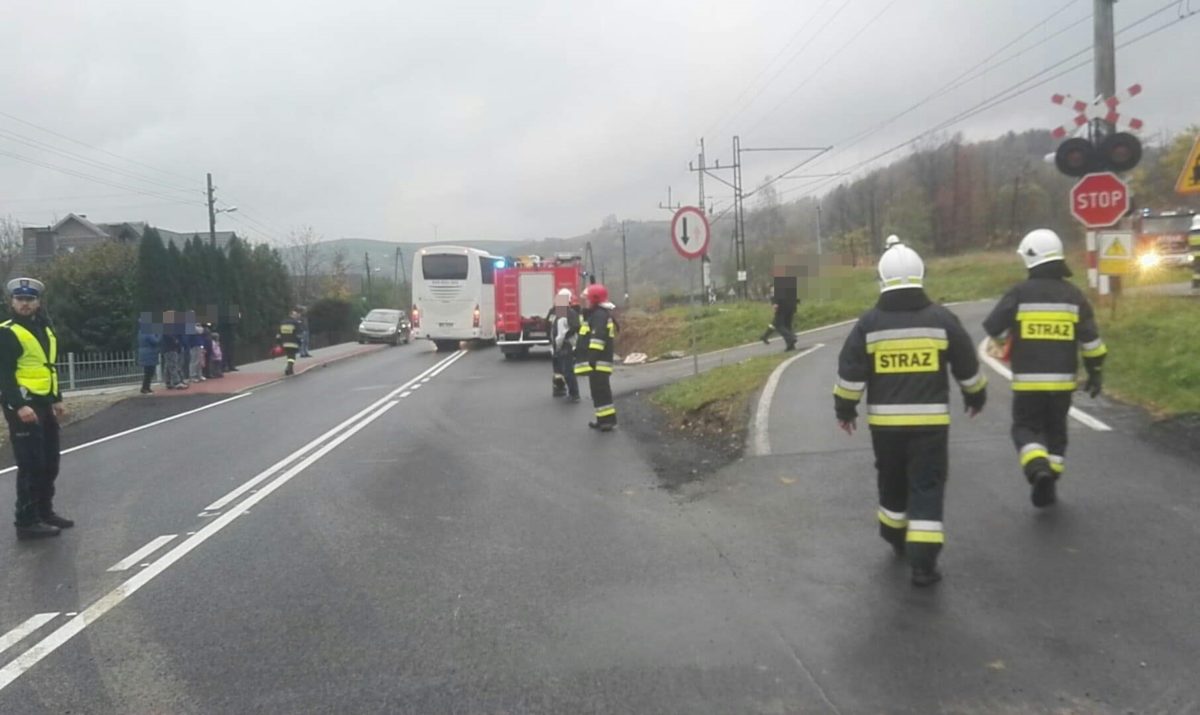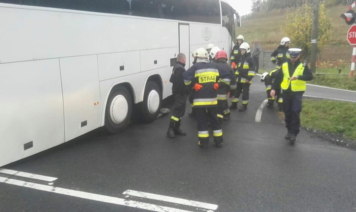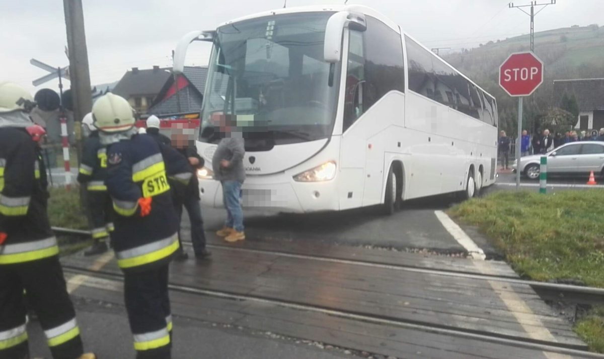O włos od tragedii! Autokar utknął przed przejazdem kolejowym w Barcicach