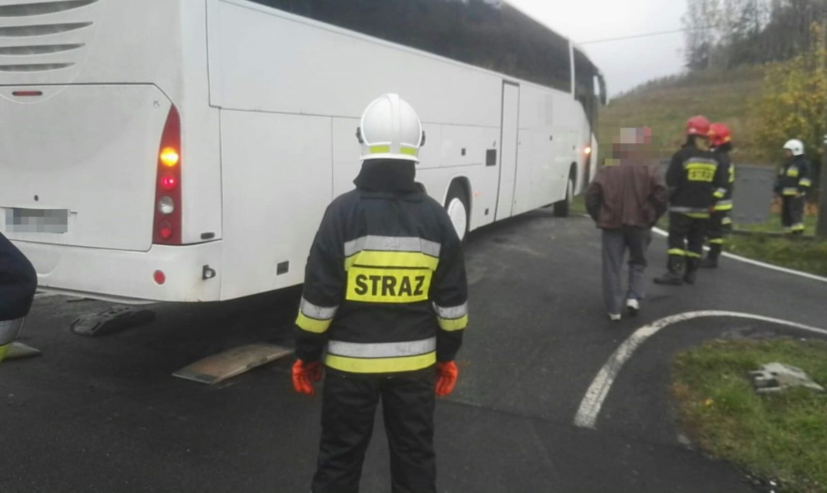 Na miejscu natychmiast zjawiły się służby ratunkowe: straż pożarna, policja i karetka Pogotowia Ratunkowego. Strażacy za pomocą lin wyciągnęli autobus. Ruch na drodze krajowej odbywał się wahadłowo.