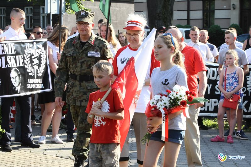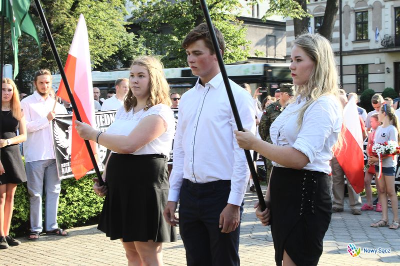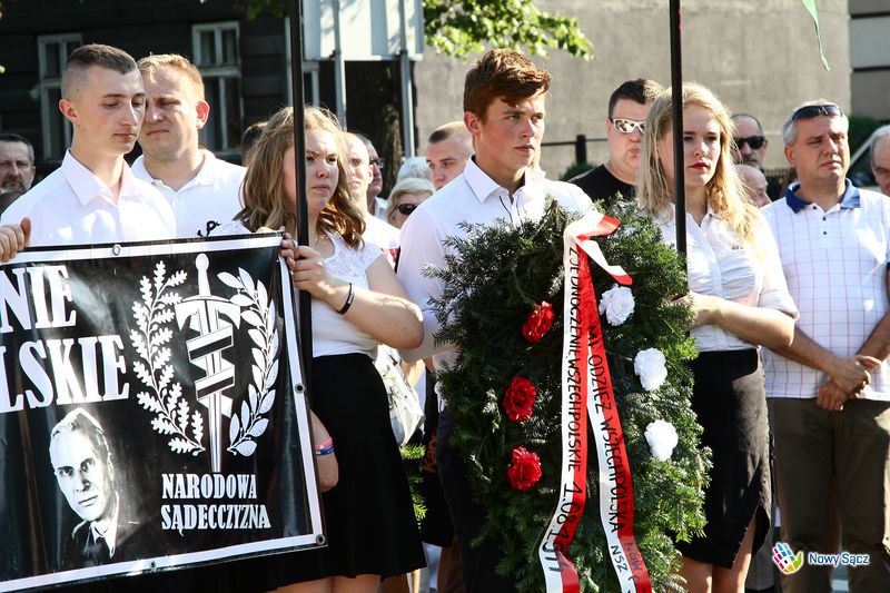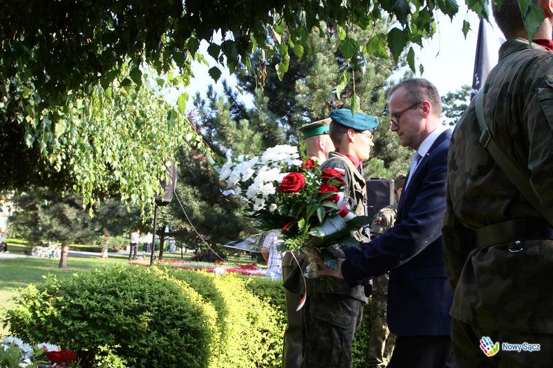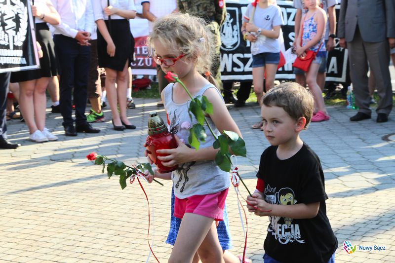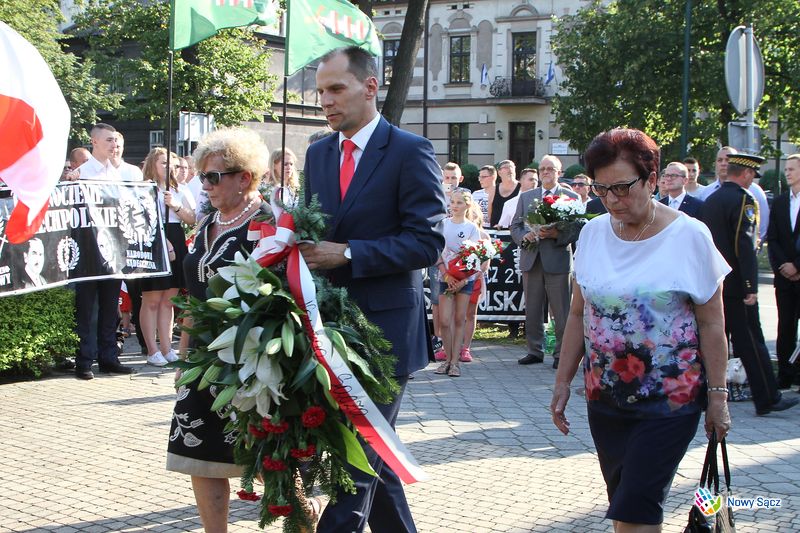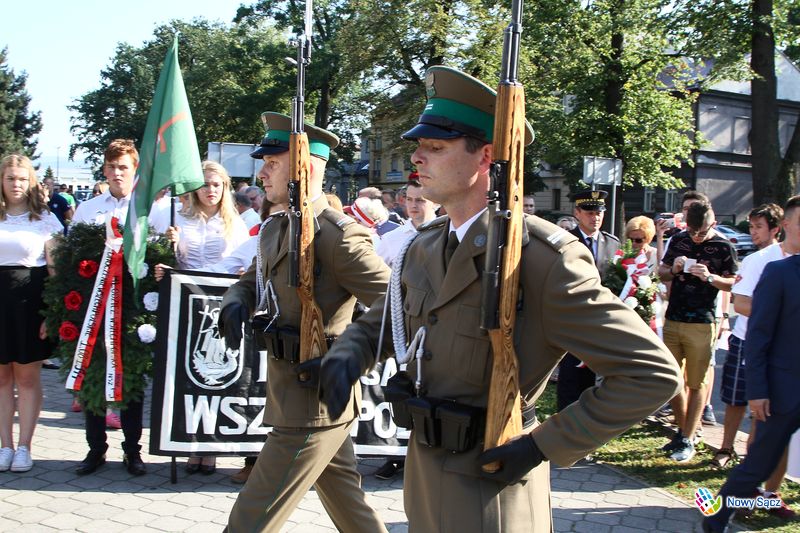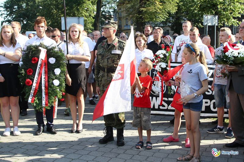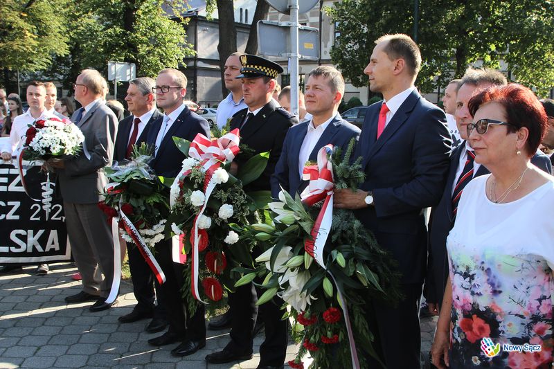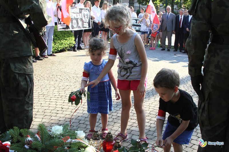 Punktualnie o 17:00 – w godzinę „W” – przy pomniku Pamięci Polskiego Państwa Podziemnego przy Alejach Batorego rozbrzmiały syreny, przypominające o 73. rocznicy wybuchu Powstania Warszawskiego. Symboliczne wiązanki kwiatów złożyli mieszkańcy, przedstawiciele parlamentu, władz miasta i powiatu, służb mundurowych, a także członkowie miejskich struktur Prawa i Sprawiedliwości, sądeckiego oddziału Klubu Gazety Polskiej, kibice Sandecji Nowy Sącz oraz delegacje środowisk patriotycznych.
