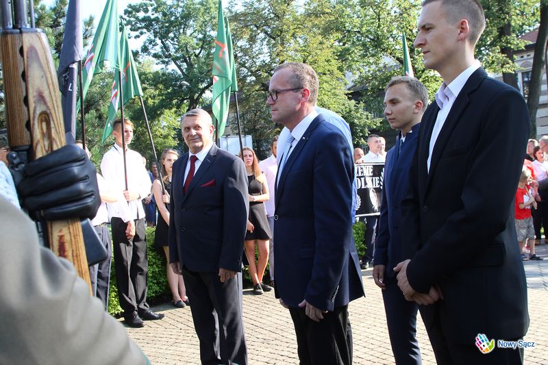 Władze miasta Nowego Sącza reprezentowali zastępca prezydenta Wojciech Piech, przewodnicząca Rady Miasta Nowego Sącza Bożena Jawor i wiceprzewodniczący Tomasz Cisoń z radnymi: Elżbietą Chowaniec, Mieczysławem Gwiżdżem i Konstantym Legutko. W uroczystych obchodach wziął również udział poseł Jan Duda, dyrektor Sądeckiego Urzędu Pracy Leszek Langer, członek Zarządu Powiatu Nowosądeckiego Marian Ryba, proboszcz Parafii Najświętszego Serca Pana Jezusa o. Stanisław Jopek SJ i kapelan Karpackiego Oddziału Straży Granicznej ks. Robert Młynarczyk, który odmówił okolicznościową modlitwę za wszystkich poległych w Powstaniu Warszawskim.