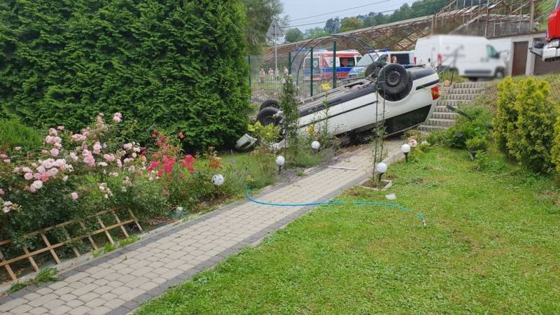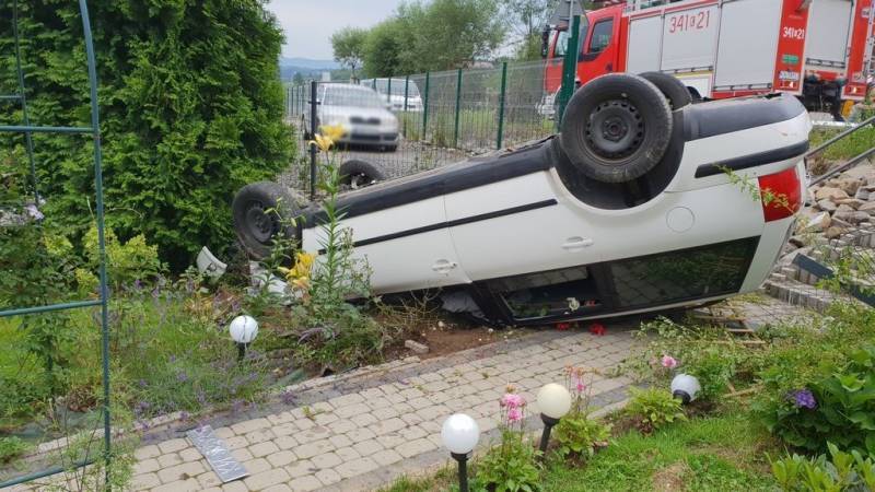 -Kierujący samochodem marki VW Passat na łuku drogi zjechał z jezdni, dachował i wjechał na teren prywatnej posesji znajdującej się poniżej poziomu drogi. Dwie osoby podróżujące samochodem opuściły pojazd o własnych siłach. Jeden z uczestników znajdował się obok auta a drugi -według świadków- oddalił się z miejsca zdarzenia w kierunku pobliskiego lasu –relacjonuje rzecznik sądecki strażaków –Działania strażaków  polegały na  zabezpieczeniu miejsca zdarzenia oraz sprawdzeniu wnętrza pojazdu pod kątem ewentualnie przebywających tam osób. Wyciągnięto za pomocą elektrycznej wyciągarki samochodowej leżący samochód na drogę i ustawiono go na poboczu. Dokonano rozłączenia instalacji elektrycznej oraz  sorpcji wyciekłych płynów silnikowych i eksploatacyjnych. Przeszukano las pod kątem obecności osoby uczestniczącej w zdarzeniu . Osoby nie odnaleziono. Po przebadaniu jednego z uczestników zdarzenia pozostał on na miejscu zdarzenia i został przekazany do dyspozycji funkcjonariuszy Policji. Działania strażaków trwały półtorej godziny.