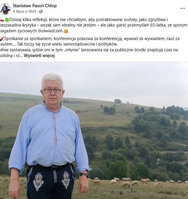 65-letni wiceprzewodniczący Sejmiku Województwa Małopolskiego zwrócił uwagę na sposób funkcjonowania wielu samorządowców i polityków. Według niego ich życie to „spotkanie za spotkaniem, konferencja prasowa za konferencją, wywiad za wywiadem, raut za rautem…” – a w tym zgiełku brakuje miejsca na rzetelną, „solidną pracę”.