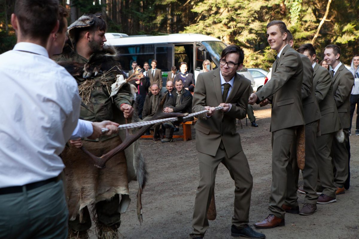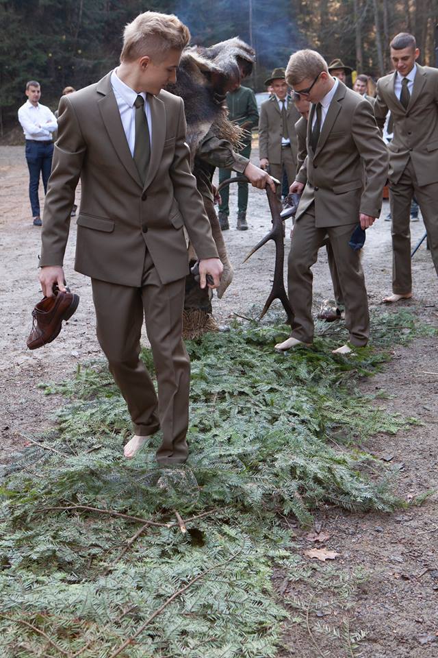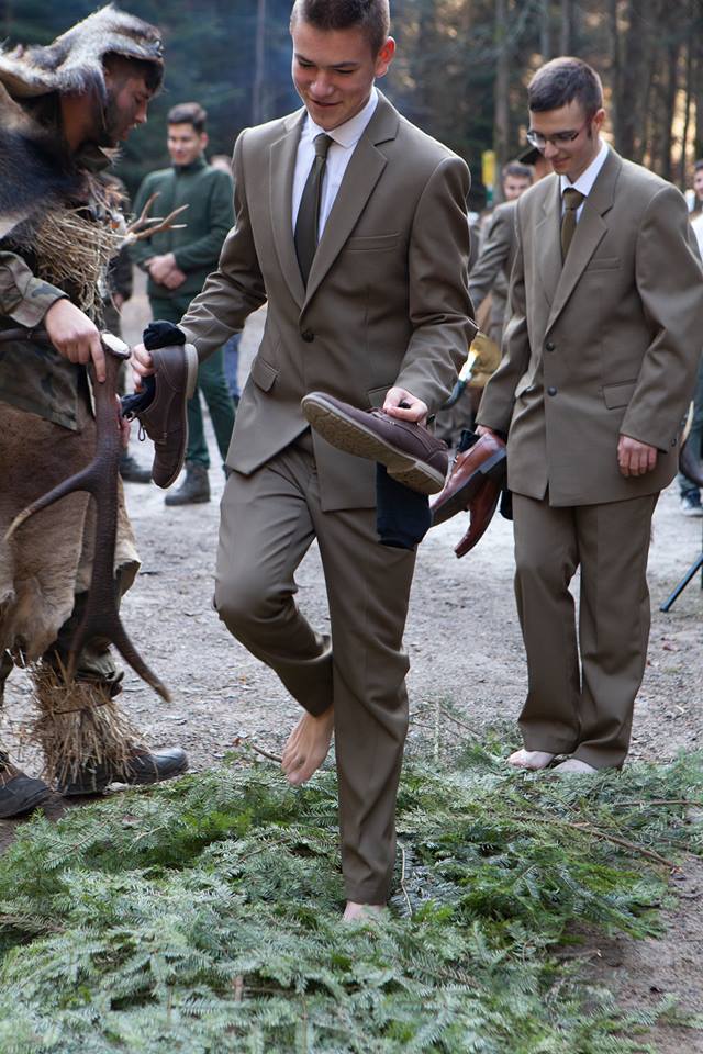 W dniu uroczystości uczniowie klasy pierwszej przemaszerowali ulicami Starego Sącza a podczas głównej ceremonii wykonywali następujące zadania: obgryzanie kory – konkurencja niezmienna od wielu lat, łapanie wściekłego kuraka, przecinanie wałków piłami typu „moja twoja”,naśladowanie głosów dzikich zwierząt, wypicie magicznego napoju, rozpoznawanie przyrządów czy przeciąganie liny.