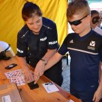 Organizatorzy Festiwalu Biegowego „Woda źródłem sukcesu” oraz „Konkursu Matematycznego o Puchar Rektora PWSZ” przygotowali wiele różnorodnych atrakcji, wśród których ogromnym powodzeniem cieszyły się stoiska, przy których można było porozmawiać z policjantami. Mundur przyciągał ochotników, którzy z entuzjazmem zakładali na głowę niebieskie czapki i hełm oraz przymierzali ochronną kamizelkę. Długie kolejki ustawiały się także do policjantki, która pokazywała dzieciakom w jaki sposób ujawnia się ślady linii papilarnych na miejscu zdarzenia. Uczestnicy chętnie zostawiali odciski swoich palców lub dłoni na dyplomie, który zabierali ze sobą na pamiątkę spotkania z sądeckimi stróżami prawa.