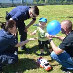 Podczas spotkania w plenerze, policjanci opowiadali dzieciom o swojej służbie i tłumaczyli na czym polegają codzienne zadania, które realizuje Policja, aby dbać o bezpieczeństwo.