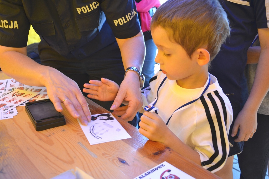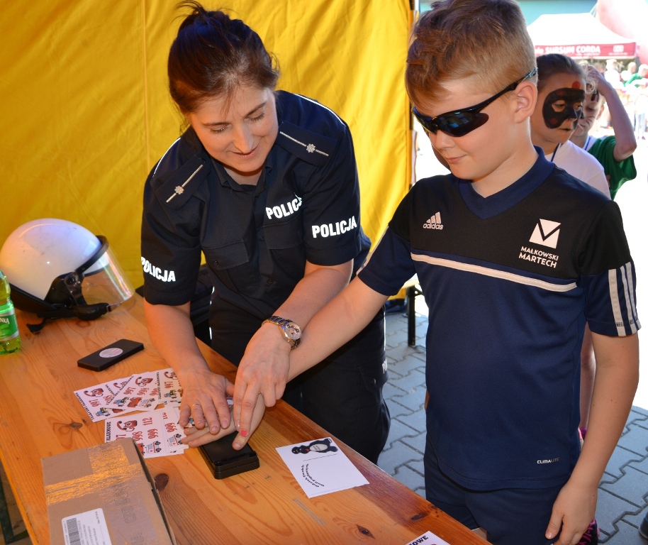 Organizatorzy Festiwalu Biegowego „Woda źródłem sukcesu” oraz „Konkursu Matematycznego o Puchar Rektora PWSZ” przygotowali wiele różnorodnych atrakcji, wśród których ogromnym powodzeniem cieszyły się stoiska, przy których można było porozmawiać z policjantami. Mundur przyciągał ochotników, którzy z entuzjazmem zakładali na głowę niebieskie czapki i hełm oraz przymierzali ochronną kamizelkę. Długie kolejki ustawiały się także do policjantki, która pokazywała dzieciakom w jaki sposób ujawnia się ślady linii papilarnych na miejscu zdarzenia. Uczestnicy chętnie zostawiali odciski swoich palców lub dłoni na dyplomie, który zabierali ze sobą na pamiątkę spotkania z sądeckimi stróżami prawa.