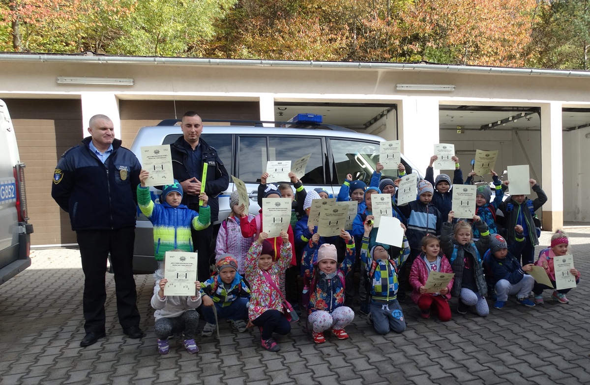 Następnie delegaci wzięli udział w prelekcji dla dzieci, które odwiedziły policjantów w krynickim komisariacie i dzięki temu spotkaniu przekonali się na czym w praktyce polega prowadzona w Polsce akcja „Kręci mnie bezpieczeństwo… przez cały rok szkolny”.