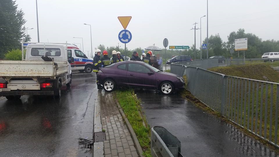 Dzisiaj (25 lipca) około godziny 11:08 na rondzie za mostem św. Kingi w Starym Sączu samochód osobowy marki Ford Puma z niewiadomych przyczyn zjechał z drogi i uderzył w barierki. Samochodem podróżowały dwie kobiety. Kierująca doznała obrażeń i została przetransportowana do sądeckiego szpitala.
