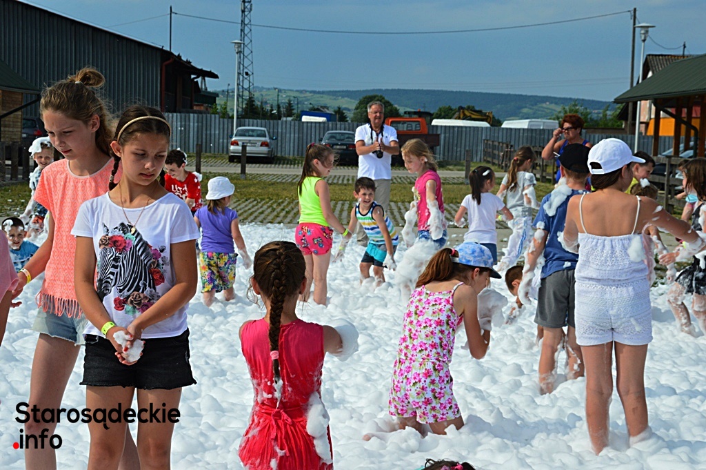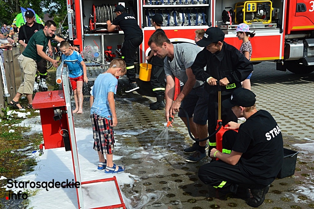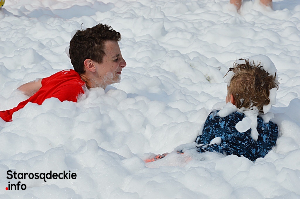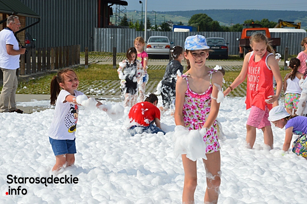 Jednak największą frajdę najmłodszym sprawili miejscowi strażacy ochotnicy. Zafundowali dzieciom pokaz gaśniczy z zastosowaniem piany. Mali uczestnicy wykorzystali okazję i w rezultacie zabawa była doprawdy przednia.
