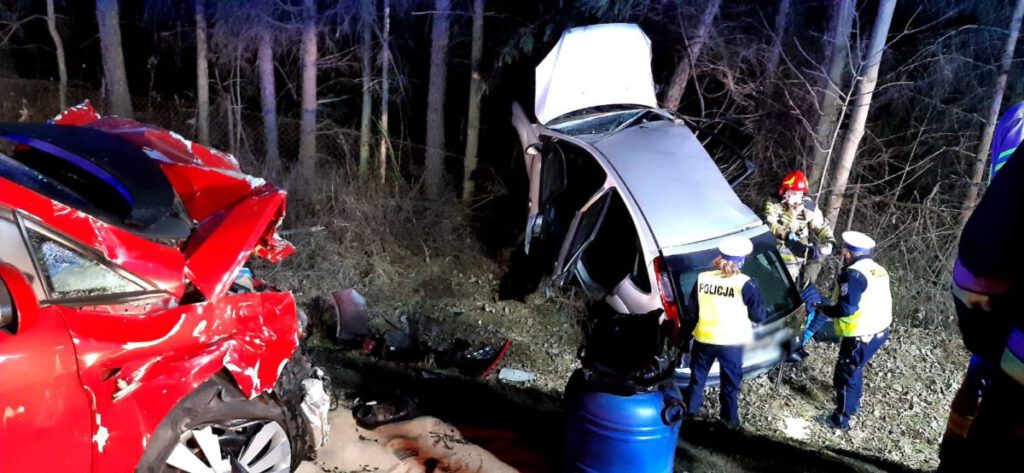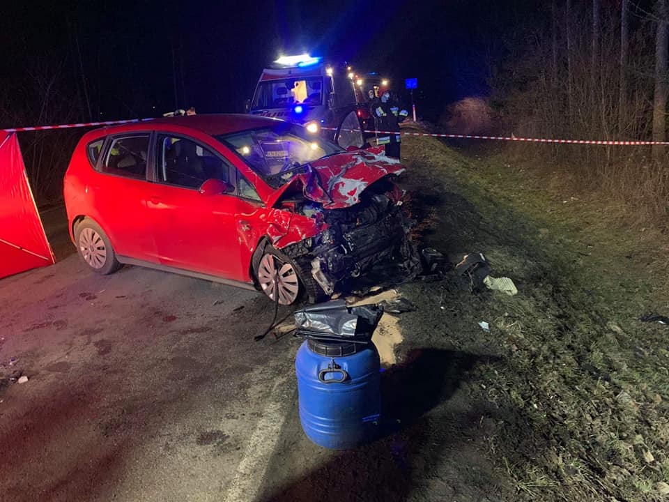 Minutę przed godziną 19:00 doszło do czołowego zderzenia dwóch samochodów osobowych. Samochód osobowy ford focus, którym kierował 22-latek z trójką młodych pasażerów (z nr rejestracyjnymi Nowego Sącza (KN) wyprzedzał kolumnę pojazdów podążających tak jak on, w kierunku Nowego Sącza. Nie zdążył powrócić na swój pas ruchu i czołowo zderzył się z jadącym z przeciwka seatem alteo mającym rejestrację powiatu nowosądeckiego (KNS). Seatem kierował 57-latek z gminy Stary Sącz.