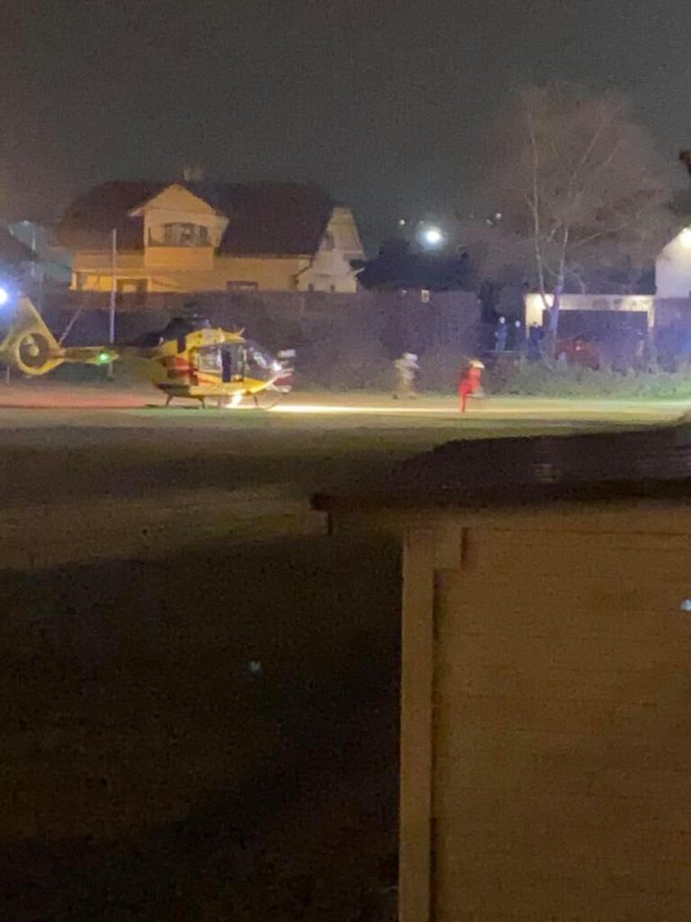 Lądowisko helikoptera zabezpieczono na płycie pobliskiego boiska sportowego. Samochody były na sądeckich tablicach rejestracyjnych. Ford (KN) a Seat (KNS).