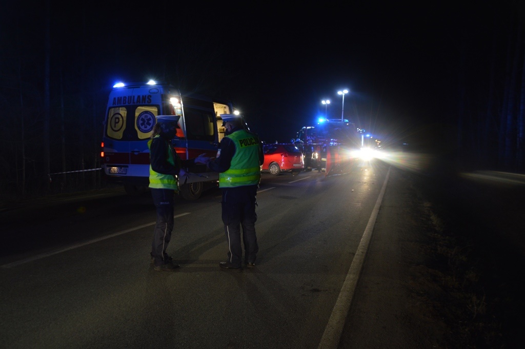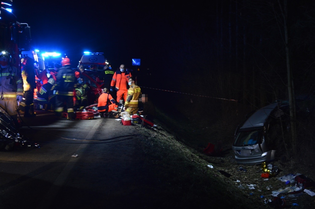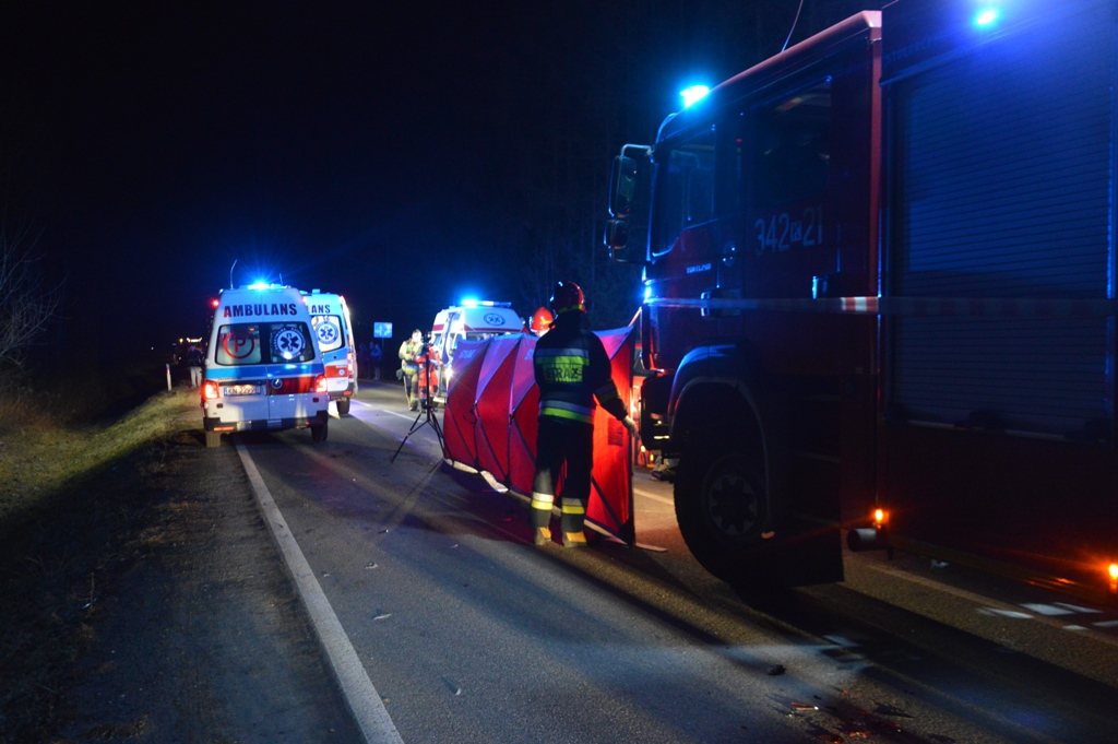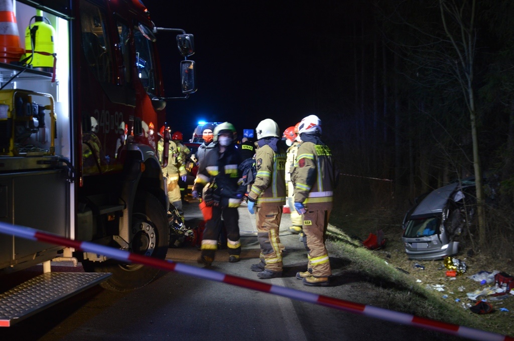 „14 marca około godziny 18.50 zastępy z JRG nr 2 w Nowym Sączu oraz OSP Stary Sącz zadysponowane zostały do działań w Starym Sączu. Po przybyciu na miejsce zdarzenia ustalono, że doszło do zderzenia czołowo bocznego dwóch samochodów osobowych marki Seat Altea oraz Ford Focus. Pojazdami podróżowało łącznie 5 osób. Samochodem marki Seat podróżował sam kierujący, który w chwili przybycia zastępów Straży Pożarnej mężczyzna znajdował się w pojeździe. W pojeździe marki Ford podróżowały cztery osoby. Trzy osoby znajdowały się poza pojazdem, dwóch mężczyzn oraz jedna kobieta natomiast w pojeździe znajdowała się zakleszczona nieprzytomna bez funkcji życiowych kobieta. Działania strażaków polegały na zabezpieczeniu miejsca zdarzenia, przeprowadzeniu segregacji pierwotnej z której wynikało, że dwóm osobom przydzielono kolor zielony a trzem osobom kolor czerwony. Dwie osoby były nieprzytomne znajdujące się na jezdni a jedna osoba bez oznak życia znajdowała się w pojeździe. Dokonano ewakuacji osoby z pojazdu oraz rozpoczęto resuscytację krążeniowo- oddechową do czasu przejęcia przez załogi karetek Pogotowia ratunkowego. Równolegle rozpoczęto resuscytację krążeniowo-oddechową u osoby znajdującej się na jezdni w związku z wystąpieniem u niej nagłym zatrzymaniem krążenia. Strażacy udzielili pomocy ratownikom medycznym pogotowia w udzielaniu medycznych czynności ratunkowych. Strażacy z OSP Stary Sącz zabezpieczyli lądowisko i przyjęli śmigłowiec LPR. Jedna osoba poszkodowana została przetransportowana do szpitala śmigłowcem LPR. Sukcesywnie z miejsca zdarzenia odjeżdżały kolejno karetki Pogotowia ratunkowego transportując osoby poszkodowane do szpitala. Po kilkudziesięciu minutach ratownicy medyczni Pogotowia Ratunkowego odstąpili od resuscytacji 18 letniej kobiety, stwierdzając jej zgon. Na miejscu zdarzenia pozostał zastęp z OSP Stary Sącz, którego dalsze działania polegały na oświetleniu terenu działań na czas prowadzenia czynności wyjaśniających okoliczności zdarzenia przez funkcjonariuszy Policji. Działania ratownicze strażaków oraz zabezpieczające trwały siedem godzin.”