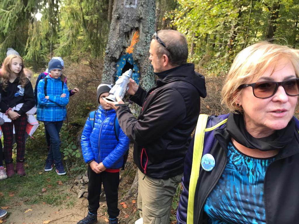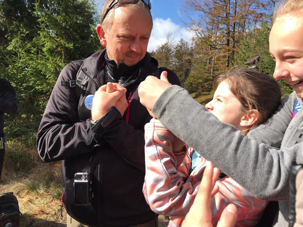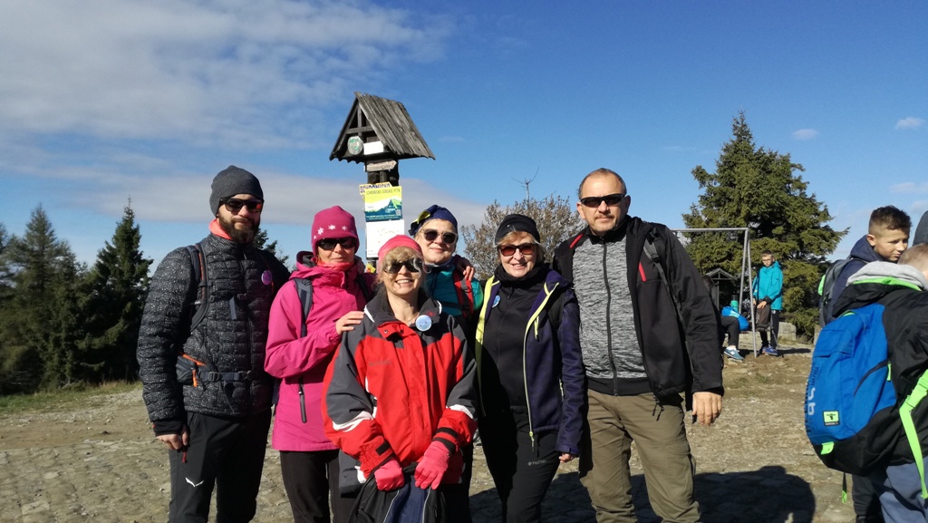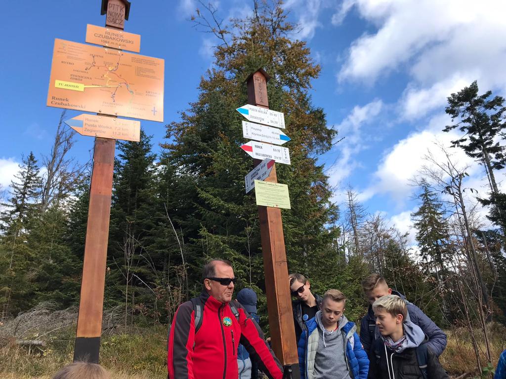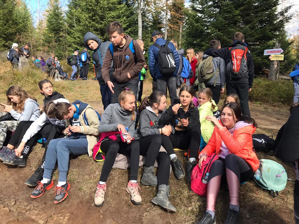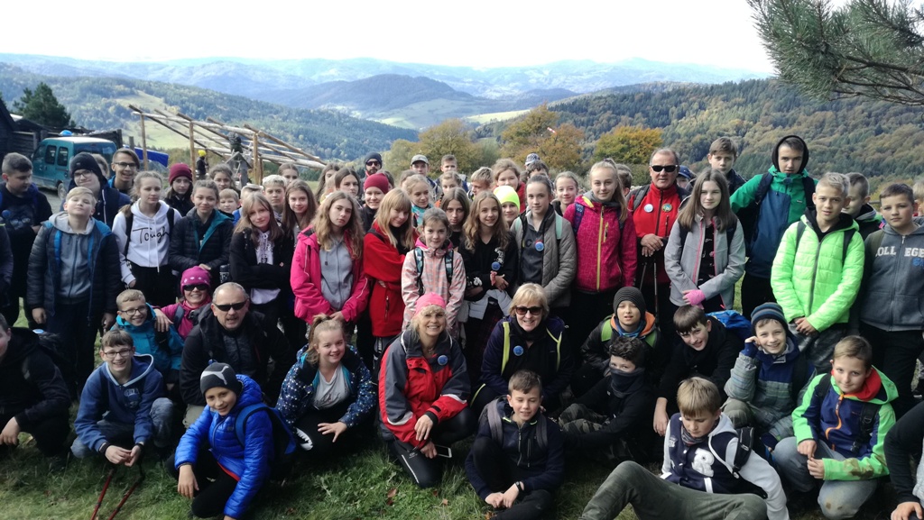 Po dotarciu do schroniska „doładowaliśmy akumulatory”. Prowiant ginął w mgnieniu oka, a herbata i kawa (dla opiekunów oczywiście) nigdzie nie smakują tak dobrze jak na trasie, w górach. Przez cały czas towarzyszyły nam piękna pogoda, no i oczywiście świetny humor. Zregenerowaliśmy siły i wyruszyliśmy na ostatni etap wędrówki, szlakiem do miejscowości Szczawnik skąd autokarami wróciliśmy do Starego Sącza. A żal było wracać, oj żal!