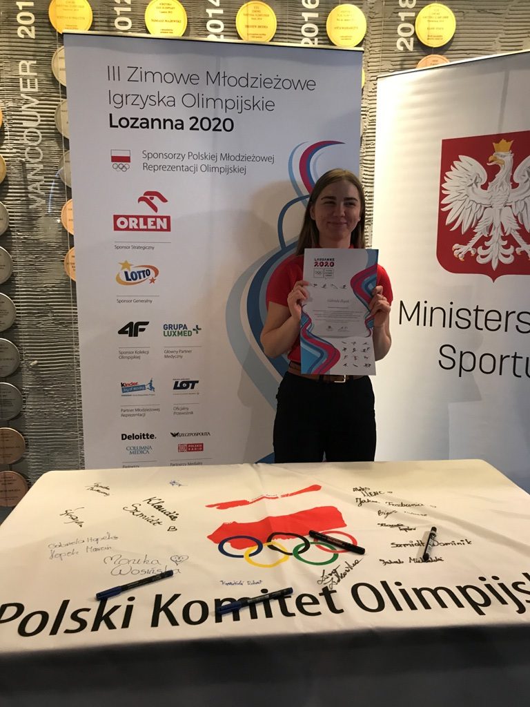 W dniu dzisiejszym ( 7 stycznia 2020) w siedzibie PKOL starosądeczanka Gabriela Hopek złożyła ślubowanie i podpisała Olimpijska flagę. Jako jedyna będzie reprezentować Polskę w konkurencjach alpejskich na III Zimowych Młodzieżowych Igrzyskach Olimpijskich w Lozannie, które starują już 9 stycznia 2020.
