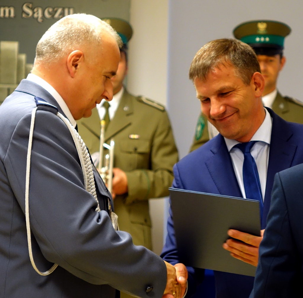 Policjantom gratulował także wiceprezydent Nowego Sącza Jerzy Gwiżdż oraz zaproszeni gości, wśród których był m.in. poseł Jan Duda i Arkadiusz Mularczyk, przewodniczący Rady Powiatu Nowosądeckiego Zygmunt Paruch, przewodnicząca Rady Miasta Nowego Sącza Bożena Jawor, wójtowie i burmistrzowie.