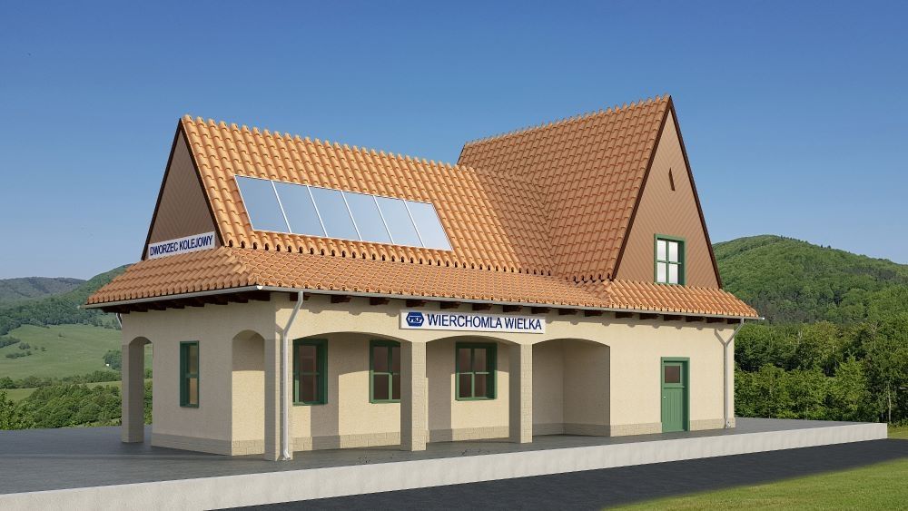 Przebudowany zostanie również, zabytkowy dworzec w Wierchomli Wielkiej. Renowację przejdzie elewacja budynku wraz z znajdującymi się na niej detalami architektonicznym. Odświeżona zostanie kamienna okładzina kolumn podtrzymujących wiatę. Elewacja zyska również bardziej stonowaną kolorystkę, do której dobrano, pasującą idealnie, dachówkę w kolorze naturalnej cegły oraz stolarkę okienną i drzwiową w kolorze zielonym.