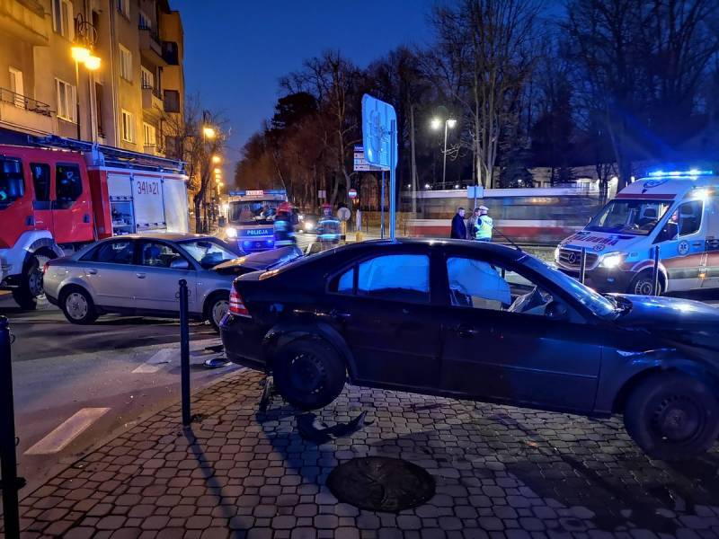 -Doszło do zderzenia czołowo bocznego dwóch samochodów osobowych -relacjonują strażacy – Pojazdami poruszało się łącznie 6 osób. Ruch na skrzyżowaniu był utrudniony i blokowany. Poszkodowana została jedna osoba, która znajdowała się w radiowozie policji. Strażacy udzielili pomocy osobie poszkodowanej. Podczas wykonywania tych czynności ratowniczych na miejsce zdarzenia dotarła karetka Pogotowia Ratunkowego. Rozłączono instalacje elektryczne w uszkodzonych pojazdach. Dokonano sorpcji rozlanych płynów silnikowych i eksploatacyjnych. Usunięto z jezdni elementy powypadkowe. W wyniku zdarzenia do szpitala została przetransportowana jedna uczestniczka zdarzenia. Pojazdy uszkodzone zepchnięto na pobocze. Na miejscu zdarzenia pozostali funkcjonariusze policji, którzy prowadzili czynności wyjaśniające okoliczności zdarzenia. Działania strażaków trwały ponad godzinę.