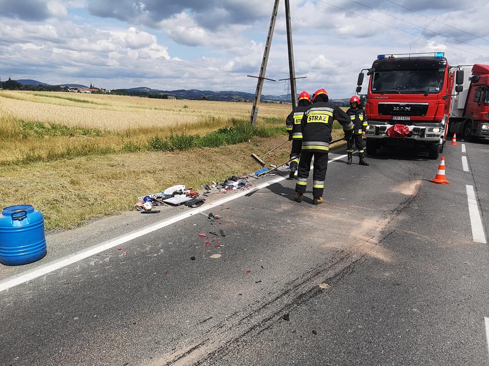 –Po przybyciu na miejsce zdarzenia ustalono, że doszło do najechania na siebie dwóch pojazdów marki Citroen Berlingo, którym podróżowała jedna osoba i VW Passat, którym także podróżowała jedna osoba. Nikt nie odniósł obrażeń -relacjonują strażacy –Pojazdy usunięto na pobocze drogi oraz uprzątnięto pozostałości pokolizyjne a wycieki płynów posypano sorbentem. Na miejscu zdarzenia pozostała Policja w celu przeprowadzenia czynności dochodzeniowych.