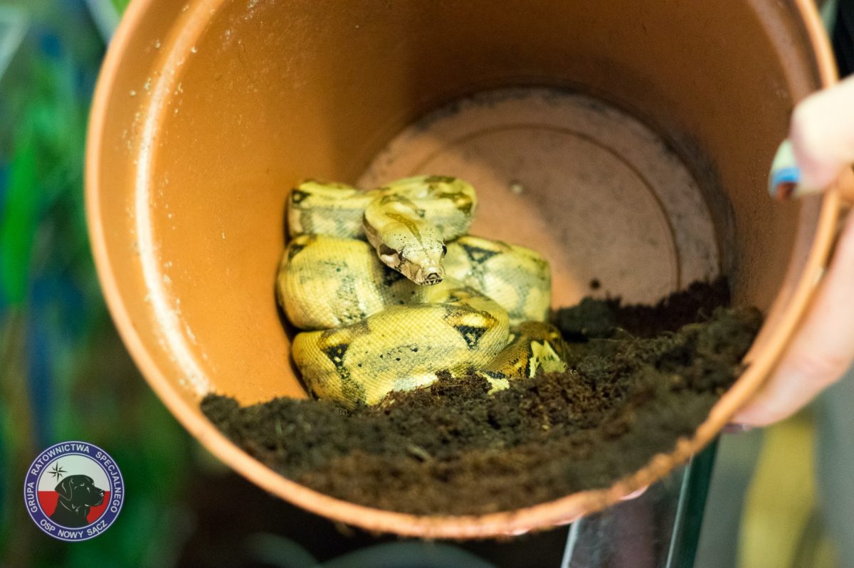 Pewnie zastanawiacie się jakie są losy znalezionego w czwartek (27 lipca) w autobusie węża boa o imieniu „Voyager”? Trafił w ręce Grupy Ratownictwa Specjalnego OSP Nowy Sącz i czeka na swojego właściciela. O sprawie pisaliśmy tutaj: Nowy Sącz. Boa dusiciel w autobusie