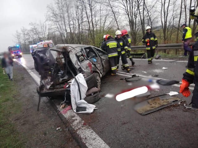 Wypadek w Kadczy. Jedna osoba zakleszczona w pojeździe
