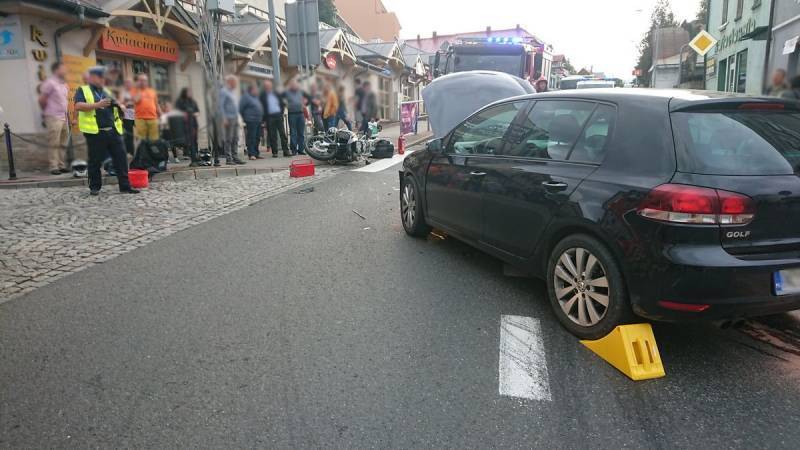 -Po przybyciu na miejsce zdarzenia stwierdzono, że doszło do zdarzenia samochodu osobowego i motocykla -relacjonują strażacy PSP z Nowego Sącza – Pojazdy blokowały całkowicie ruch na drodze krajowej. Samochodem podróżowała sama kierująca, która nie uskarża się na żadne dolegliwości. Motocyklem podróżował sam kierujący, który został poszkodowany. Działania strażaków polegały na zabezpieczeniu miejsca zdarzenia, udzieleniu kwalifikowanej pierwszej pomocy kobiecie z samochodu osobowego. Przybyła na miejsce karetka Pogotowia ratunkowego przebadała osoby podróżujące pojazdami. Osoby zostały na miejscu zdarzenia. Działania strażaków trwały ponad godzinę.