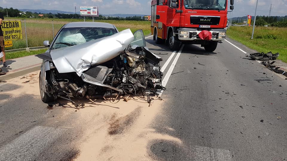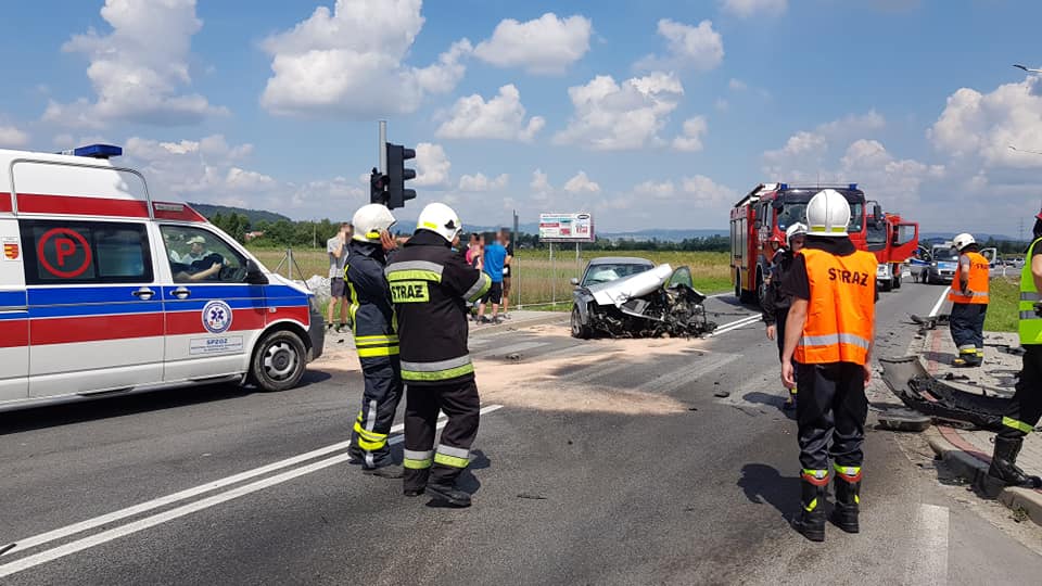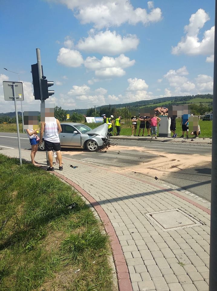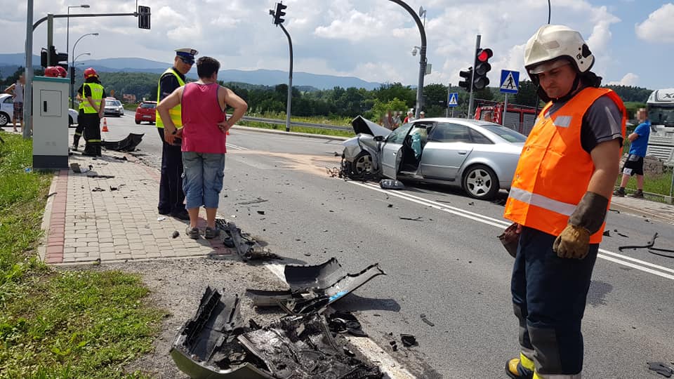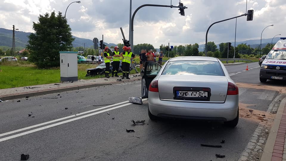 Dwa samochody osobowe marki Audi zderzyły się na skrzyżowaniu z zamontowaną sygnalizacją świetlną, czyli w miejscu gdzie z drogą krajową numer 87 przecina się lokalna szosa z centrum Starego Sącza do dzielnicy Cyganowice. Do wypadku doszło dzisiaj (28 lipca) około godziny 11:35. Kierowcy trafili do szpitala.